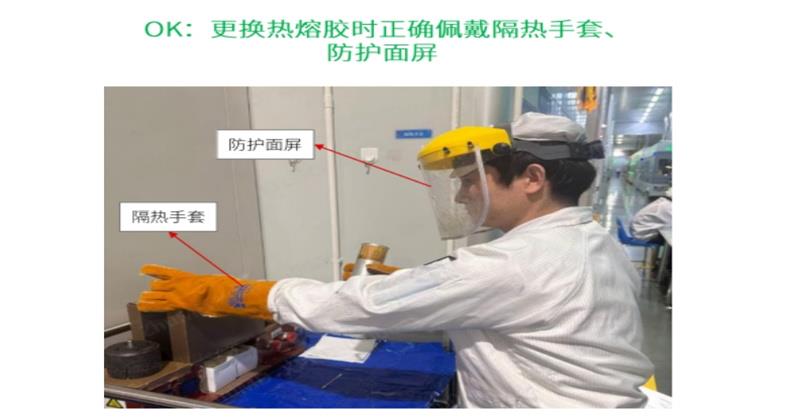 根據(jù)企業(yè)需求,識(shí)別安全作業(yè)時(shí)是否違規(guī)未穿戴防護(hù)裝置現(xiàn)存問(wèn)題點(diǎn):更換熱熔膠時(shí),人員有時(shí)未按規(guī)范操作,易發(fā)生安全隱患,需現(xiàn)場(chǎng)語(yǔ)音提示并將該事件記錄解決方案:攝像機(jī)部署在工位上,識(shí)別人員手部有無(wú)佩戴隔熱手套,頭部有無(wú)佩戴防護(hù)面罩,若無(wú)觸發(fā)告警